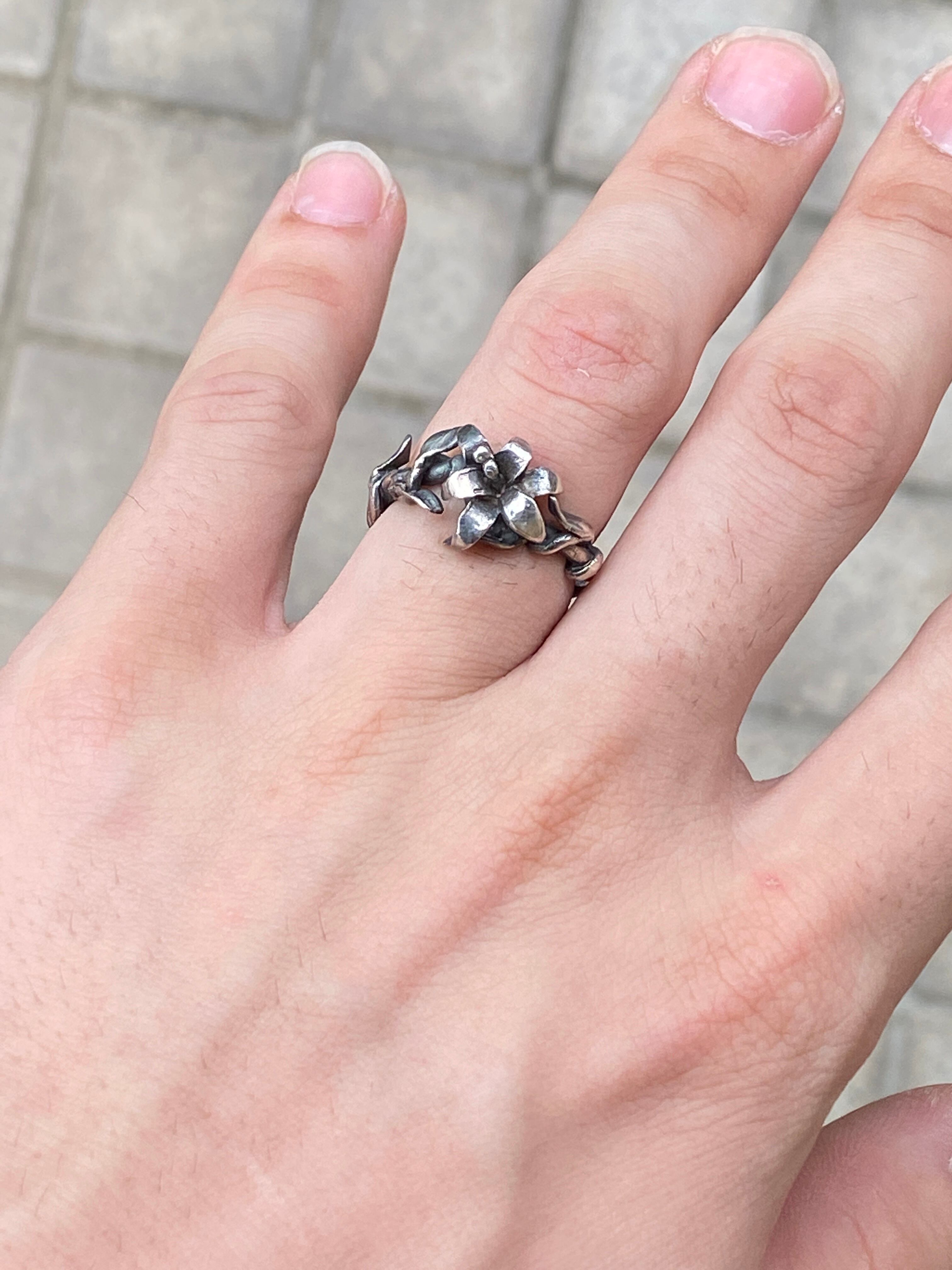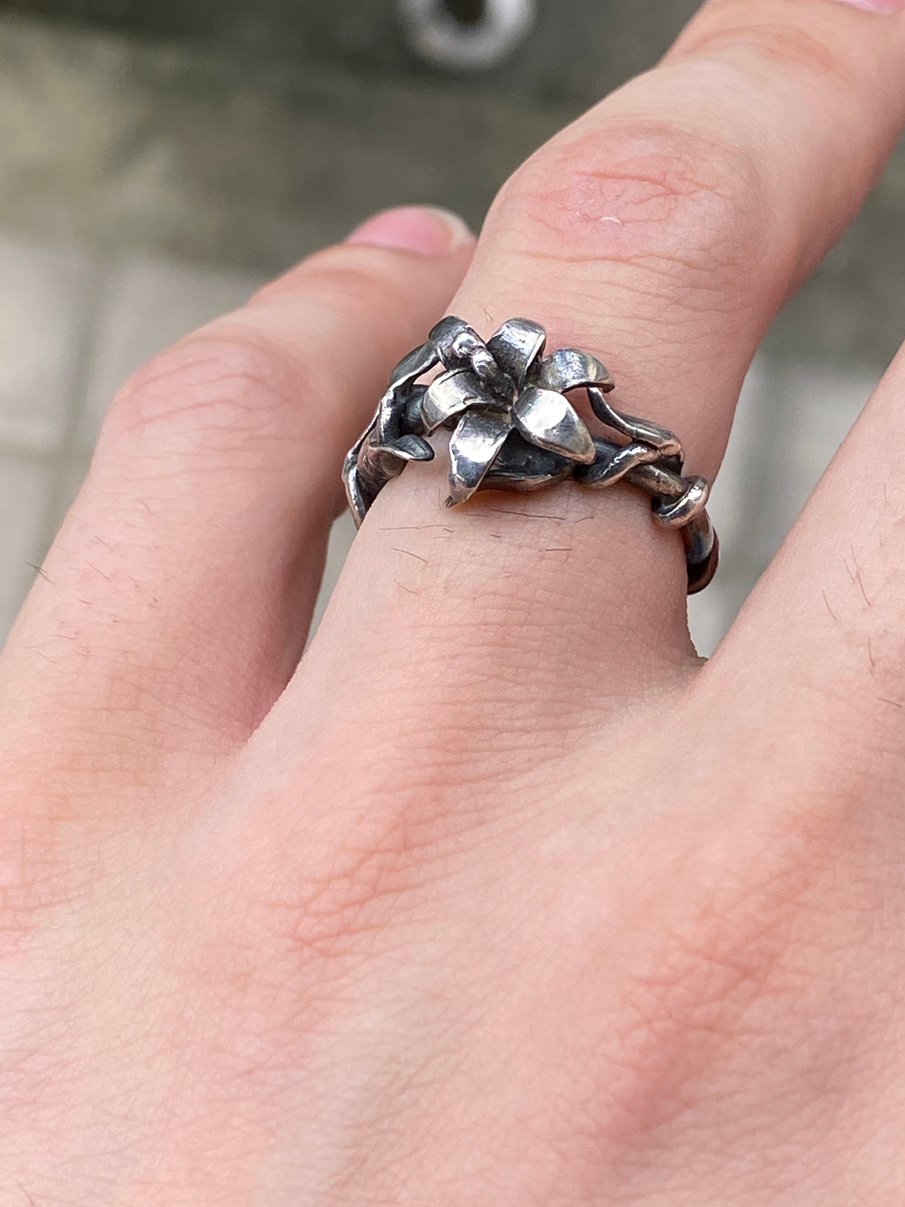 百合の花とそれに絡まる蔦をデザインしたコンビアクセサリーのリングです。